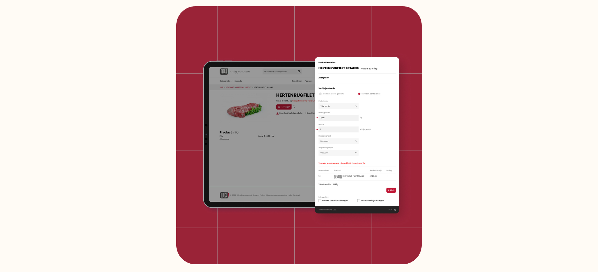 De klantgerichtheid die je verwacht van een betrouwbare partner in de vleesverwerkende industrie, moest ook voelbaar zijn op het online platform. Klanten kunnen gemakkelijk specifieke producten terugvinden dankzij zorgvuldig afgebakende productcategorieën en slimme zoekfilters. Bovendien worden producten die voor de klant/organisatie in kwestie relevant zijn, automatisch klaargezet in gepersonaliseerde bestellijsten. Denk bijvoorbeeld aan seizoensgebonden producten die de klant nodig heeft. Daarnaast kunnen Meco's klanten ook zelf eenvoudig en onbeperkt bestellijsten opstellen, waarmee ze hun menu's nog efficiënter kunnen inplannen en managen.