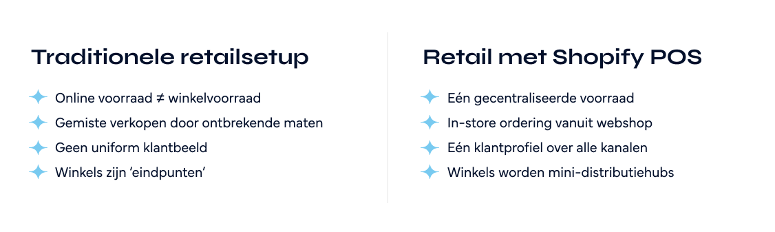 Met Shopify POS wordt die onzekerheid weggewerkt doordat alle verkooppunten realtime dezelfde voorraad delen. En doet dat zonder ingewikkelde ERP-gymnastiek.